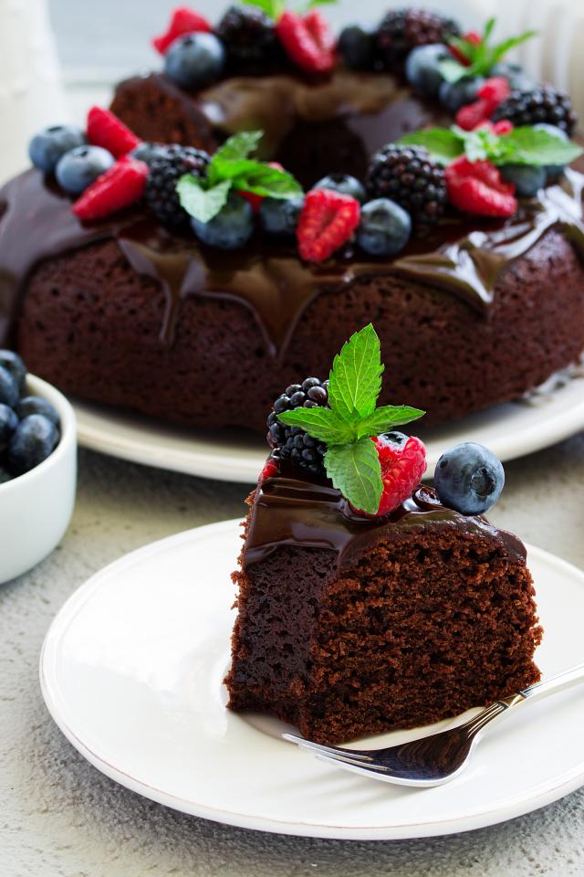 Wallpaper Chocolate cake with cream and grated chocolate decorated with berries