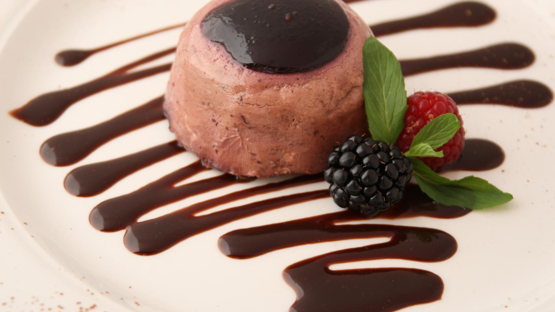 Wallpaper Chocolate dessert with blueberries and raspberries
