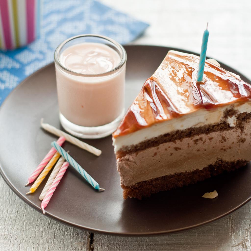 Wallpaper A piece of festive cake with a candle on a plate