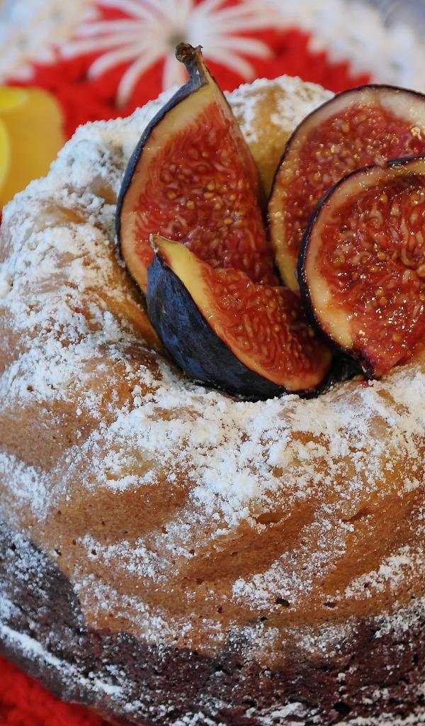 Wallpaper Sweet cupcake with figs and powdered sugar