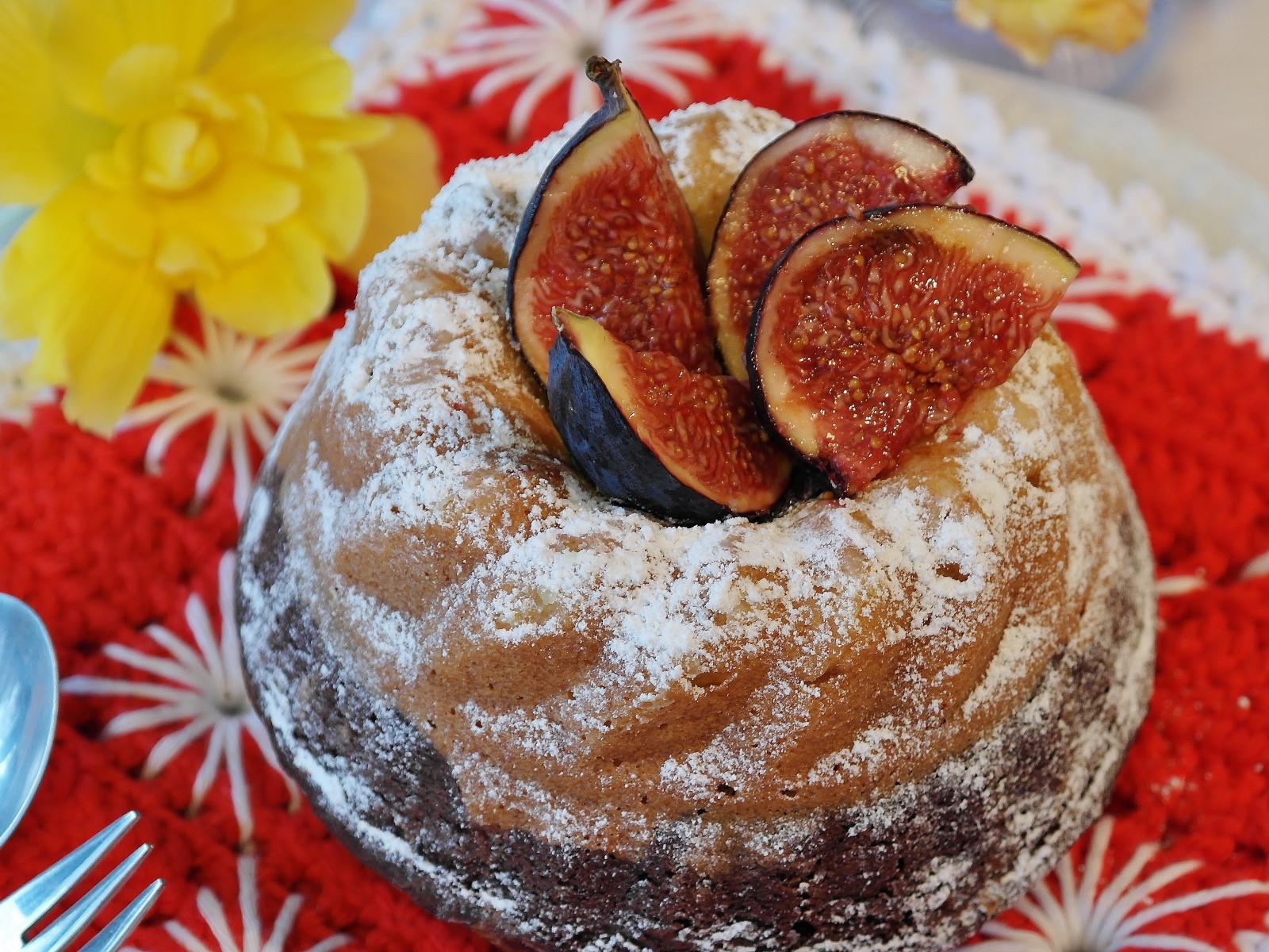 Wallpaper Sweet cupcake with figs and powdered sugar