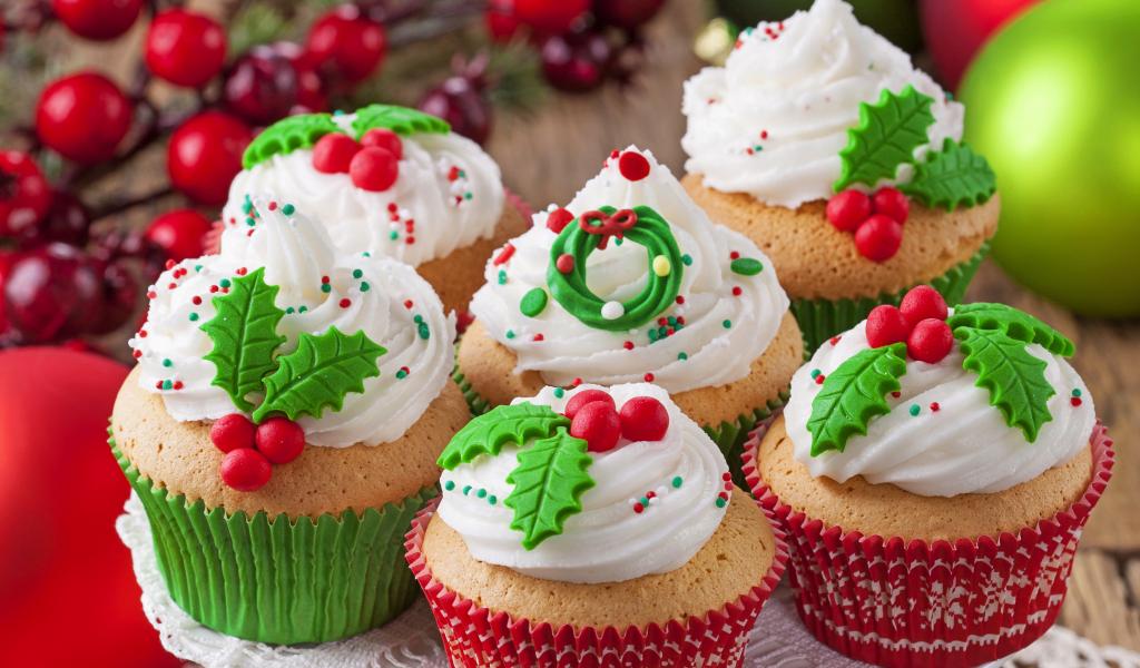 Wallpaper Christmas Festive Cupcakes with Cream