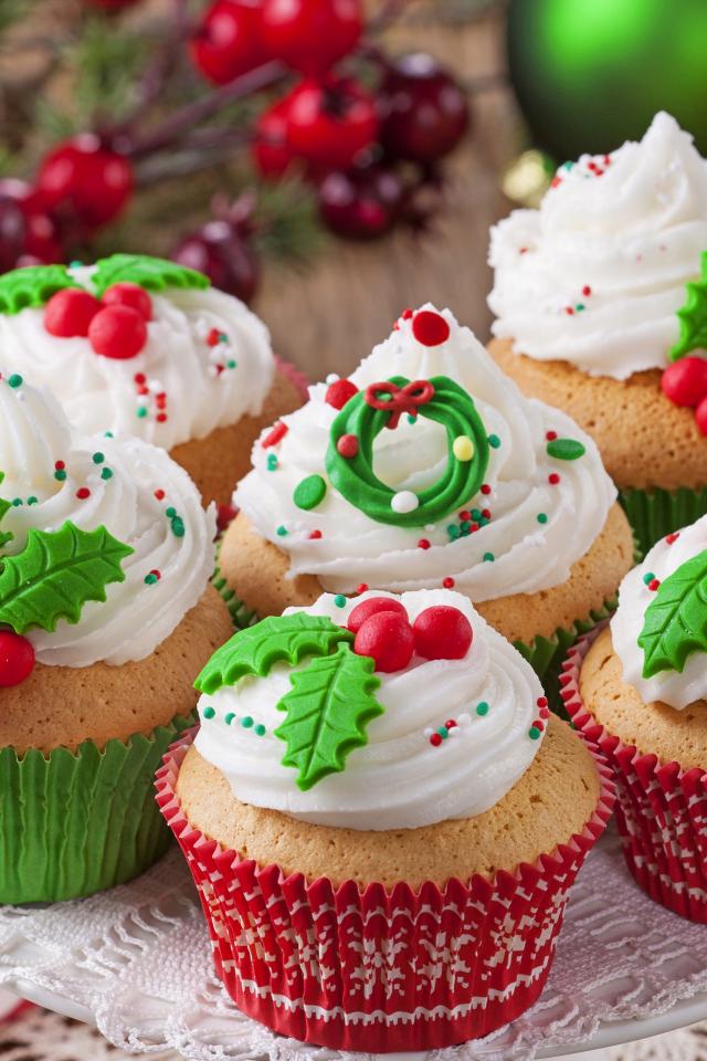 Wallpaper Christmas Festive Cupcakes with Cream