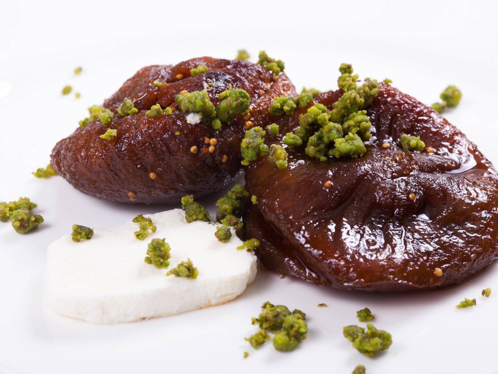Wallpaper Figs with pistachio nuts on a white background