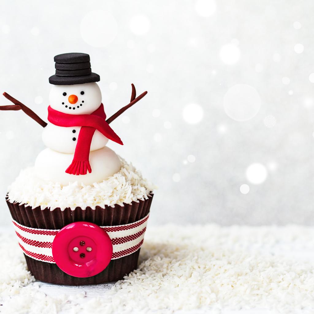 Wallpaper Christmas cupcake with a snowman