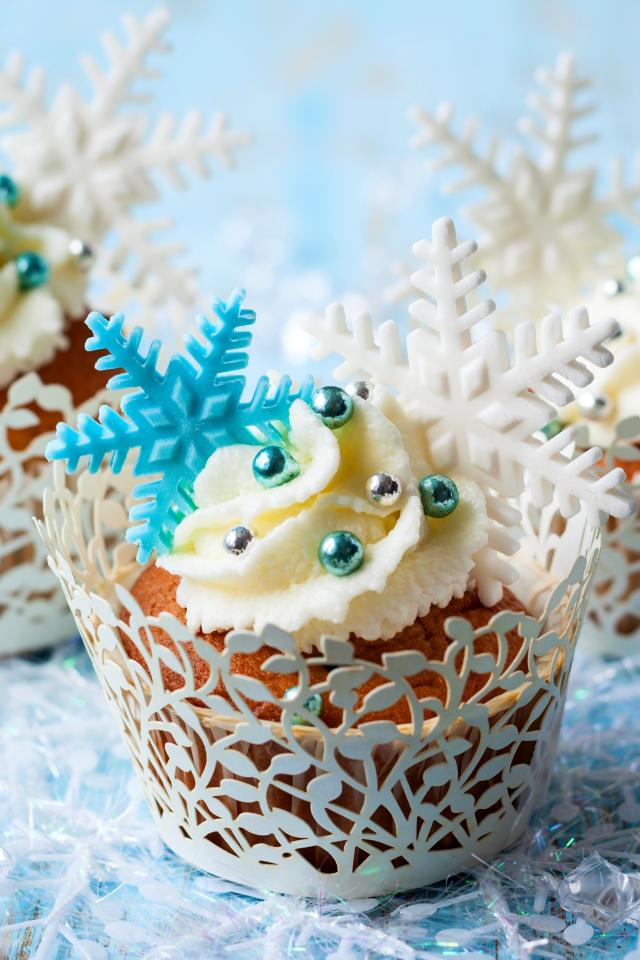 Wallpaper Christmas cupcakes with snowflakes and beads