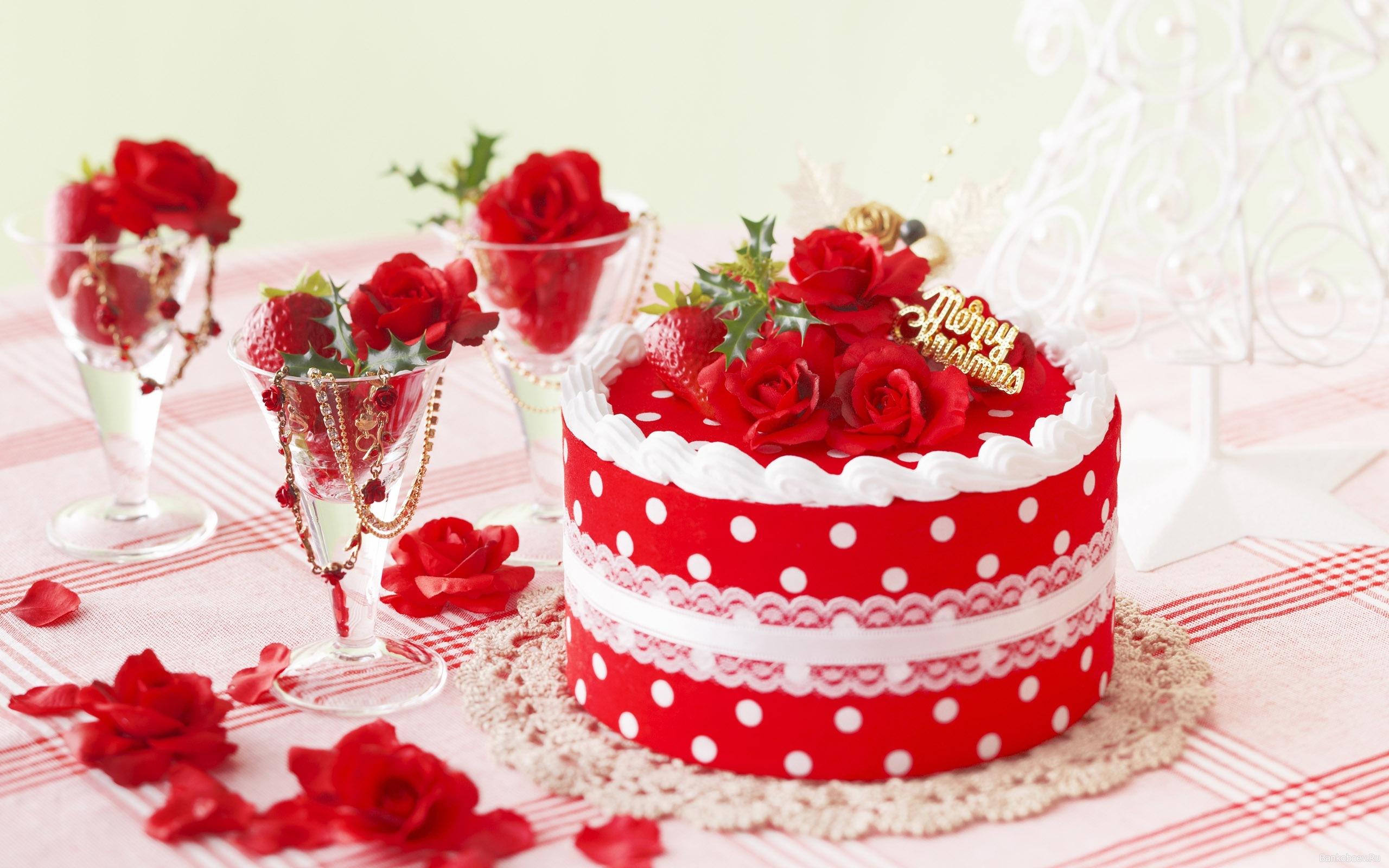 Wallpaper Beautiful red cake with flowers for Christmas 2019
