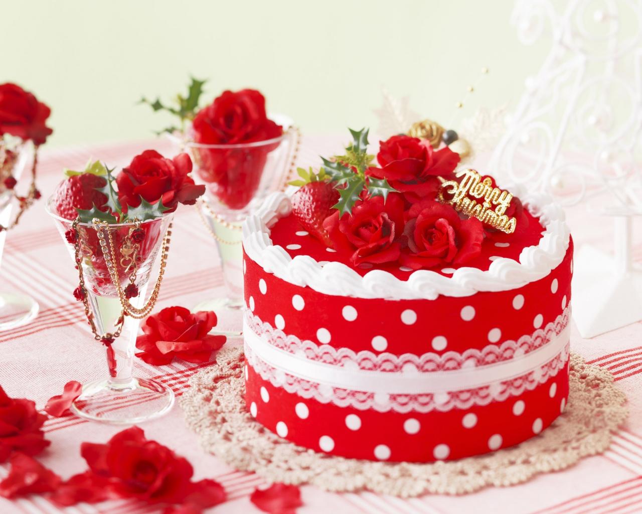 Wallpaper Beautiful red cake with flowers for Christmas 2019