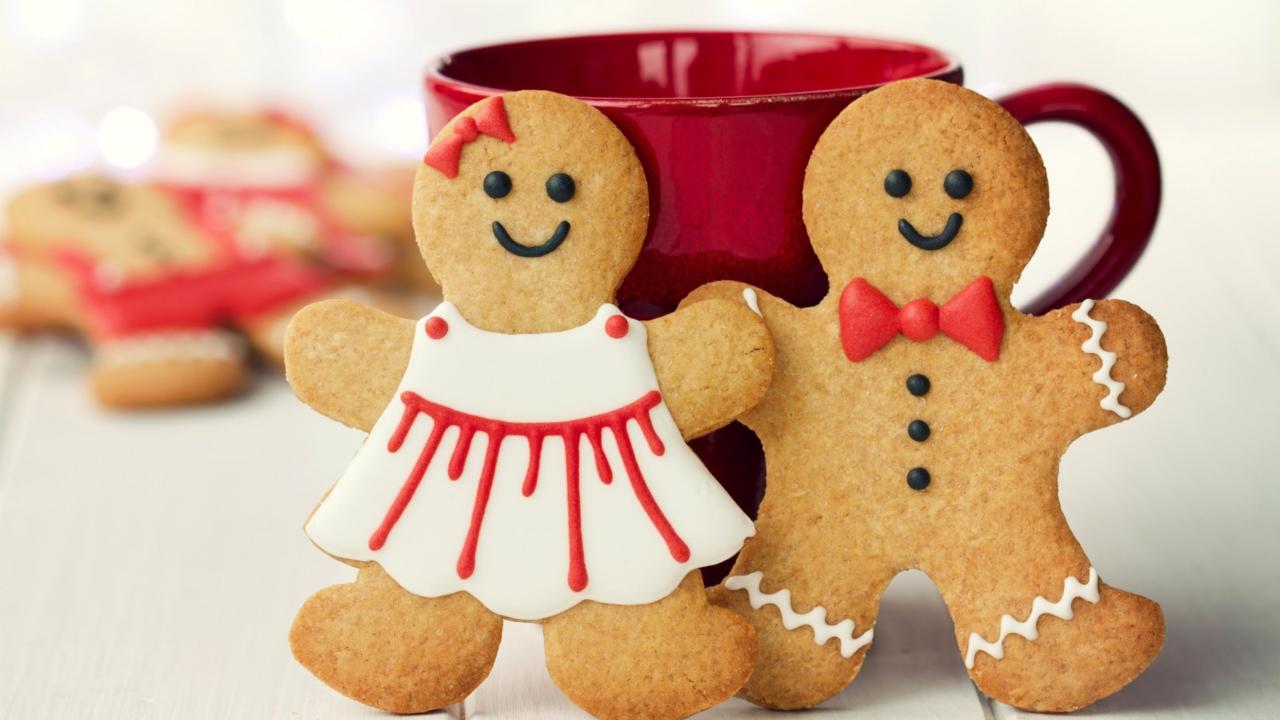 Wallpaper Festive cookies boy and girl with a cup on the table