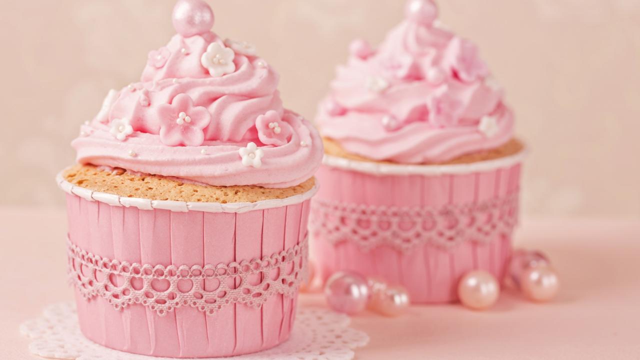 Wallpaper Appetizing sweet cupcakes with pink cream
