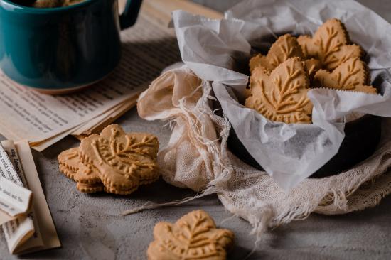 Wallpaper Cookies in the shape of leaves on the table
