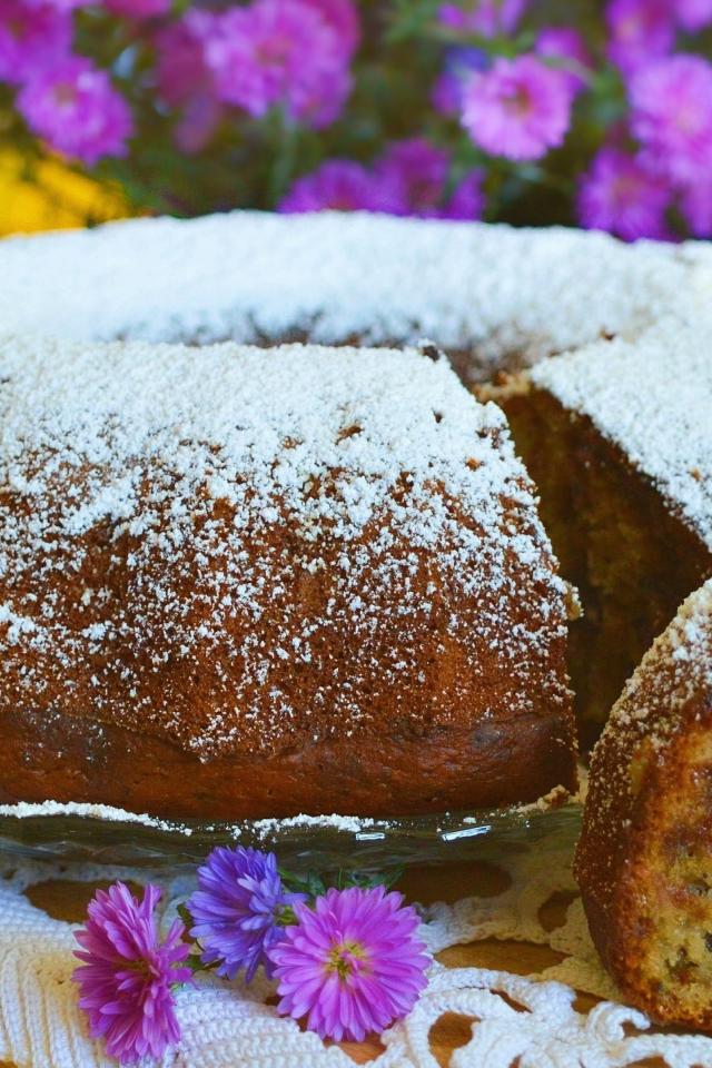 Wallpaper Fragrant dried fruitcake sprinkled with powdered sugar