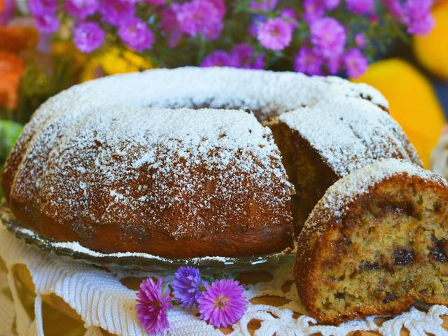 Wallpaper Fragrant dried fruitcake sprinkled with powdered sugar