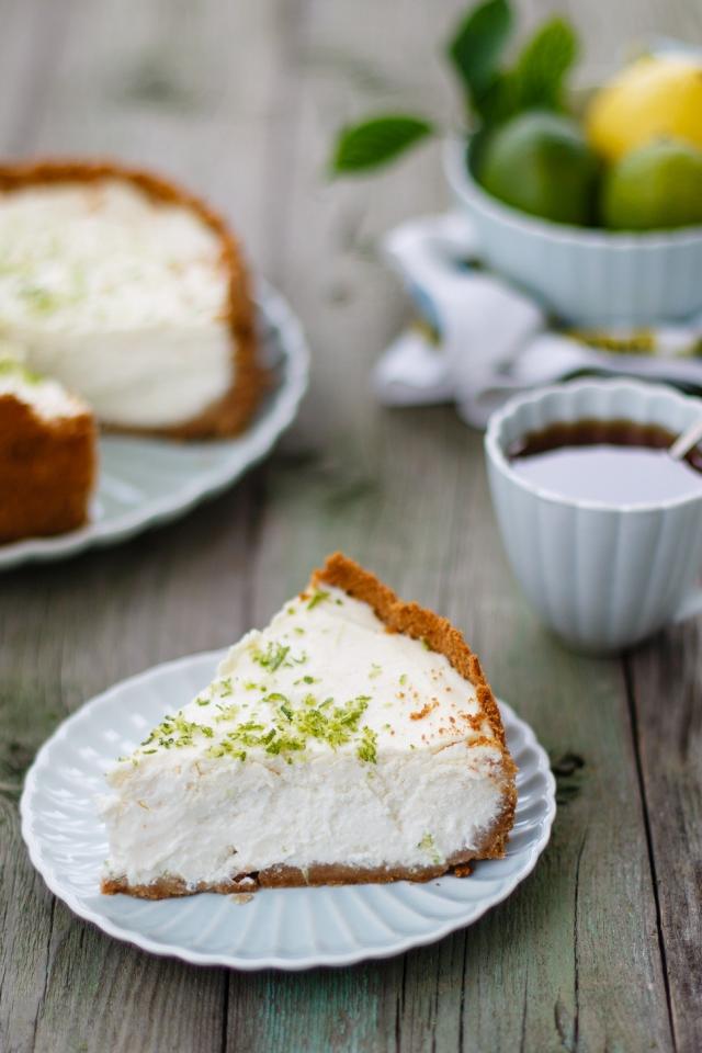 Wallpaper A slice of cheesecake on the table with a cup of tea