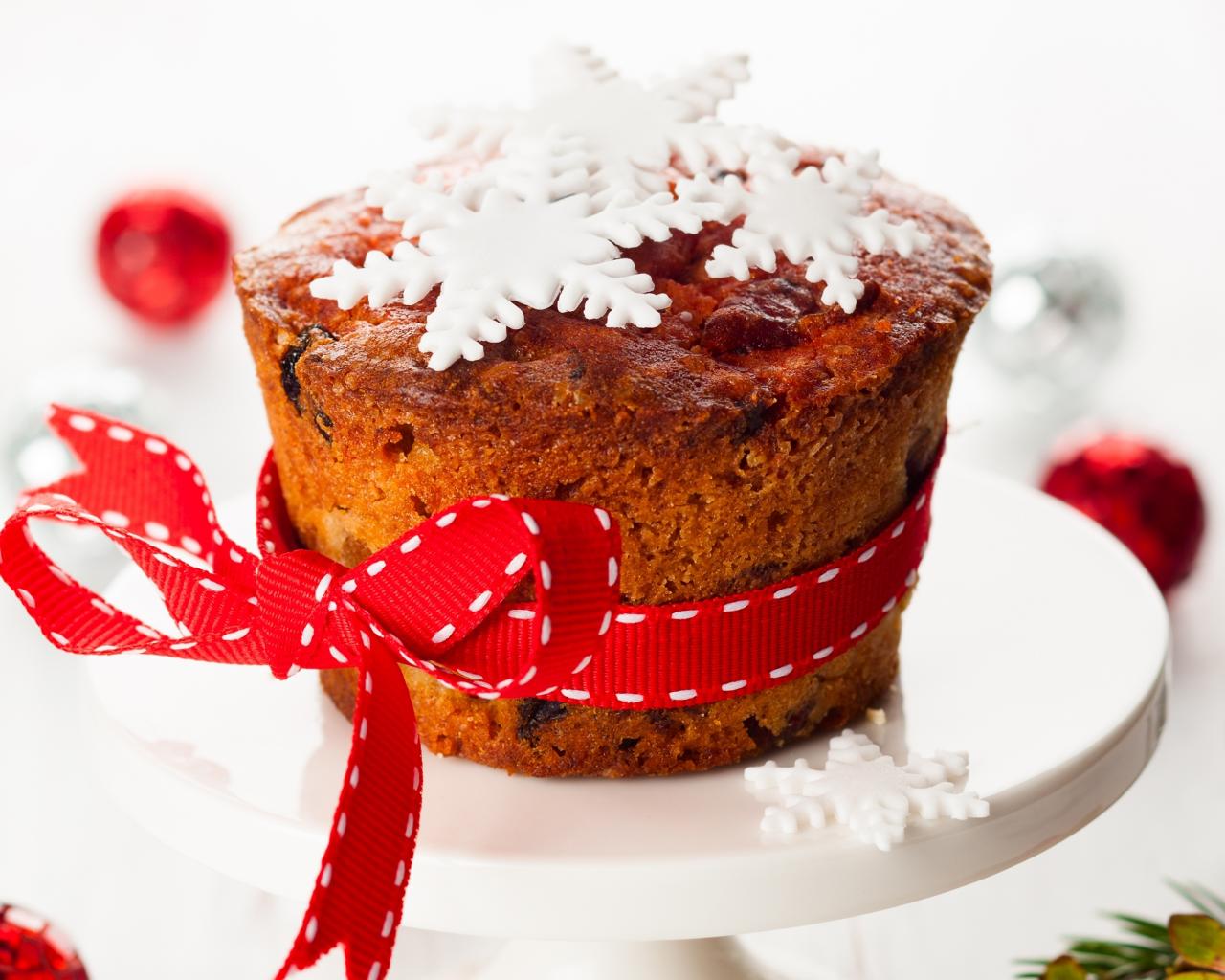 Wallpaper Cupcake with a bow decorated with snowflakes