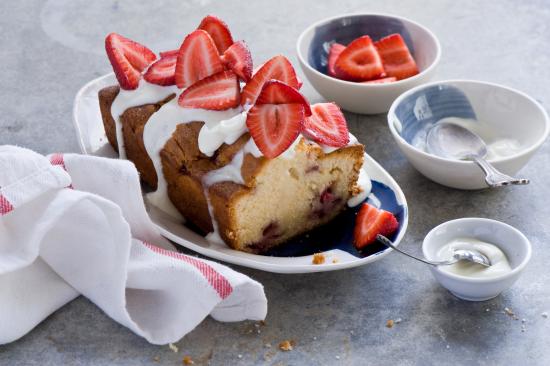 Wallpaper Cupcake with cream on a plate with fresh strawberries