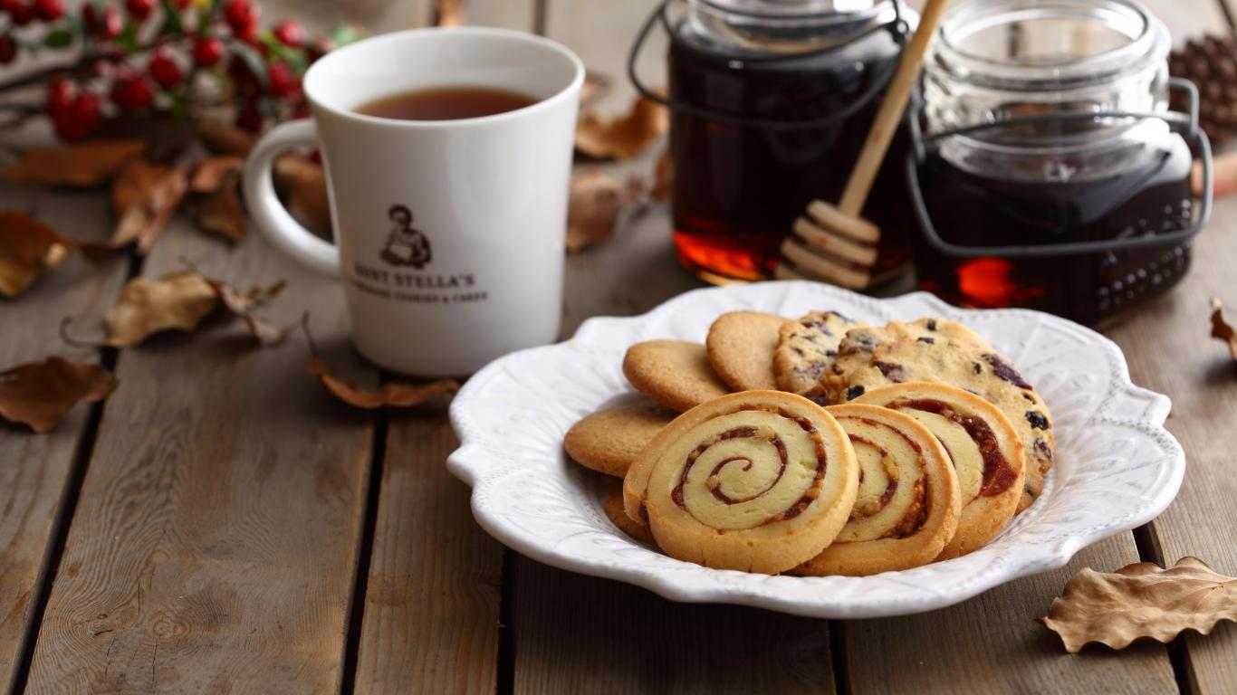 Wallpaper Cookies on a plate on the table with tea and jam