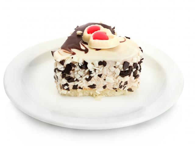 Wallpaper Heart-shaped cake with chocolate on a white plate