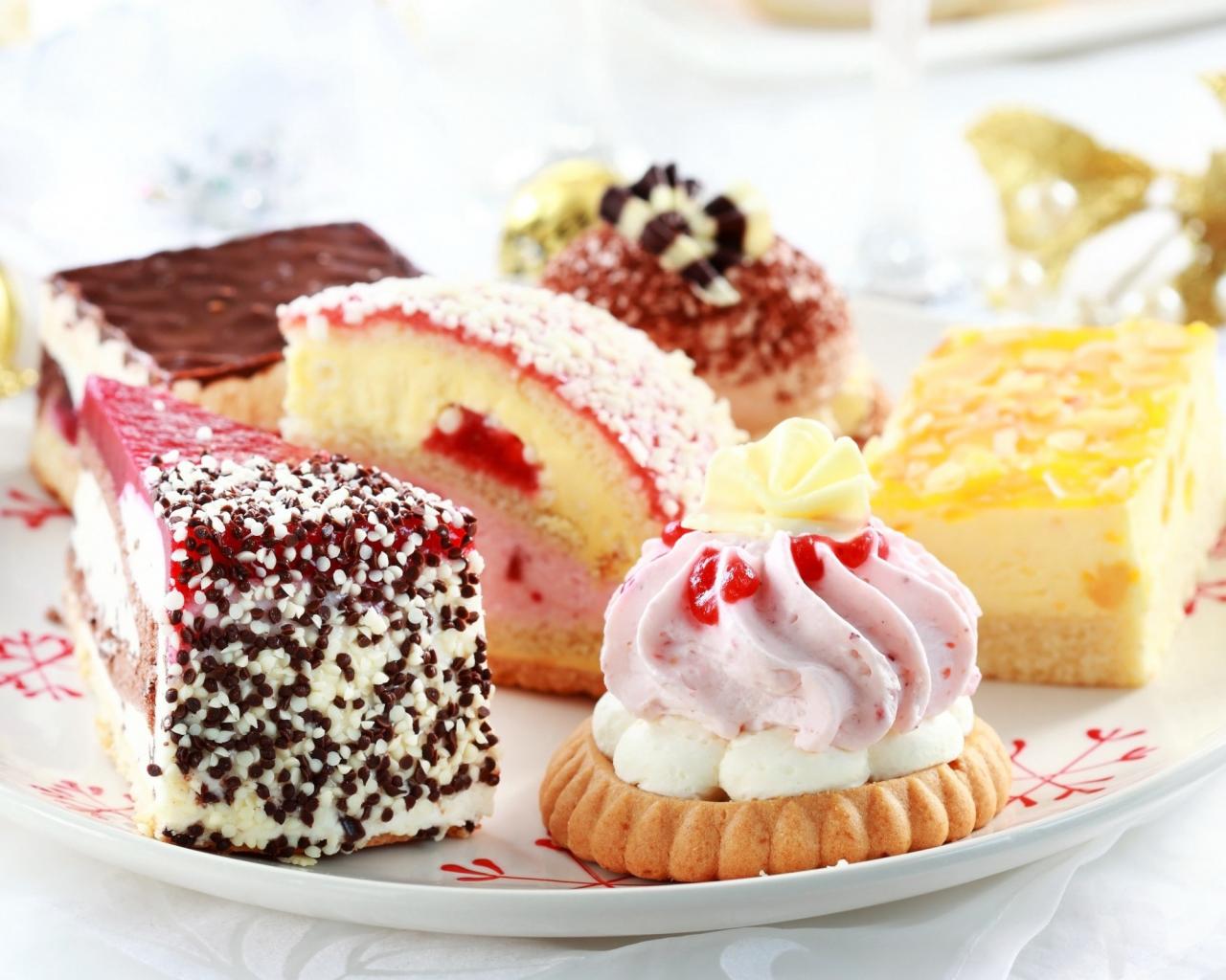 Wallpaper Sweet tasty different cakes on a plate