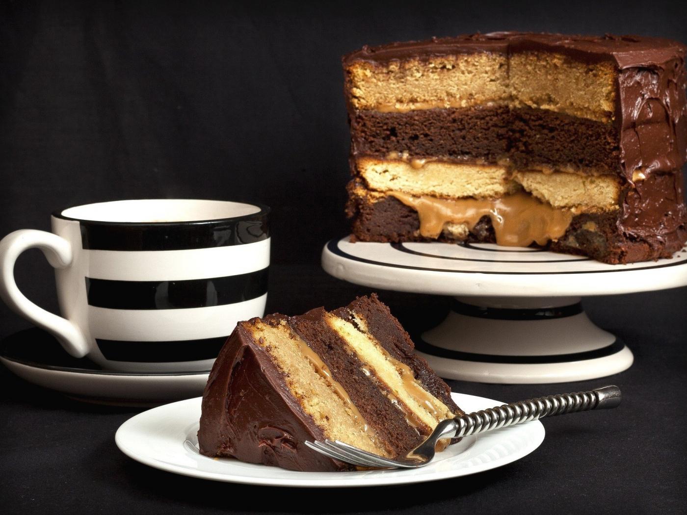 Wallpaper Sponge cake on the table with a cup