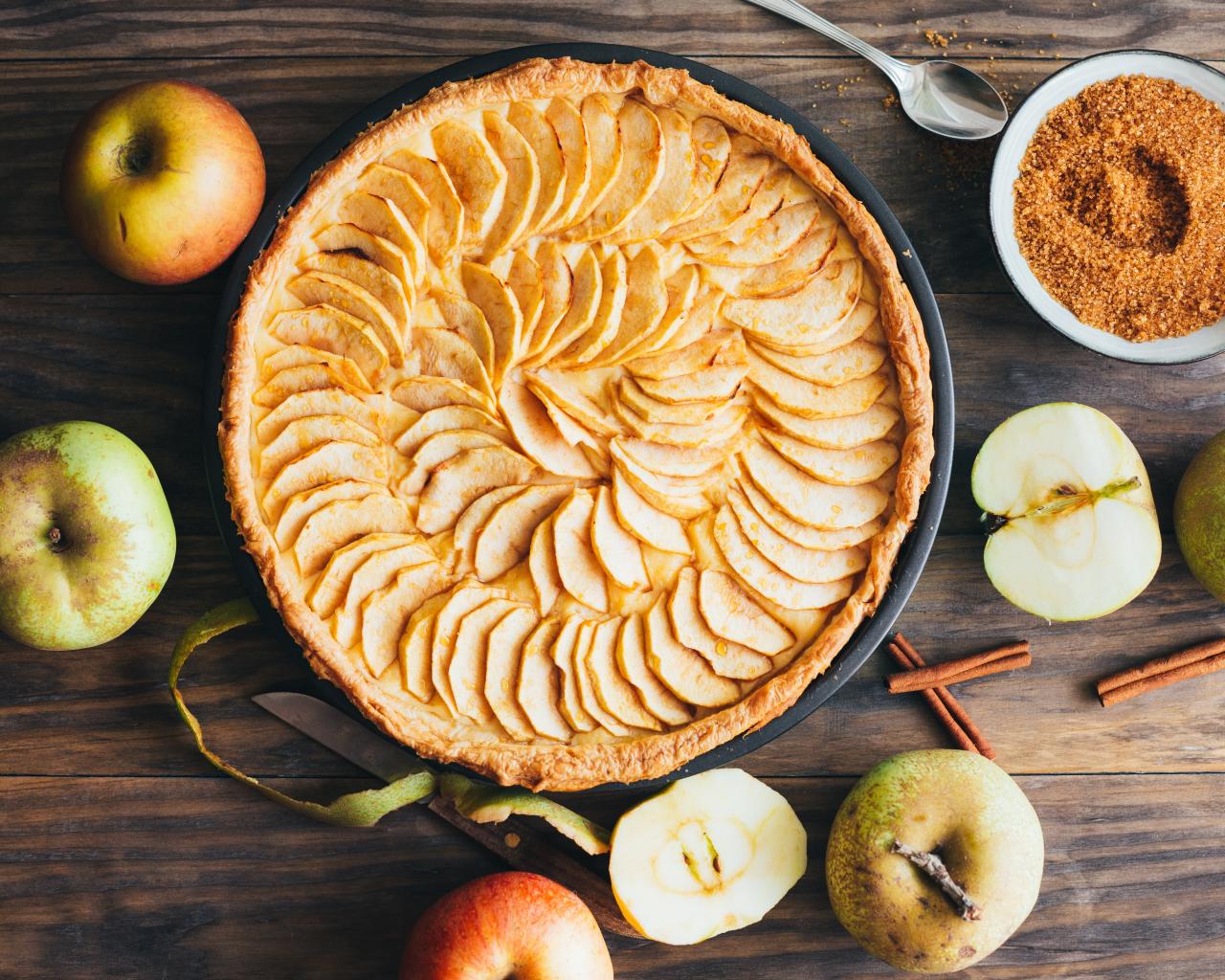 Wallpaper Delicious pie on the table with apples and brown sugar