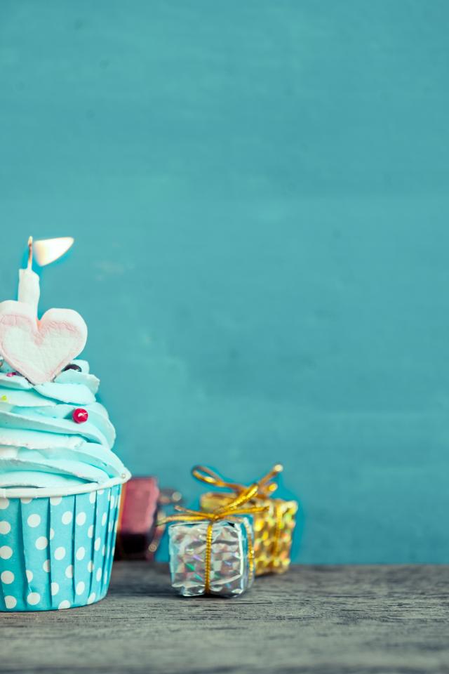 Wallpaper Blue cream cupcake and little gifts