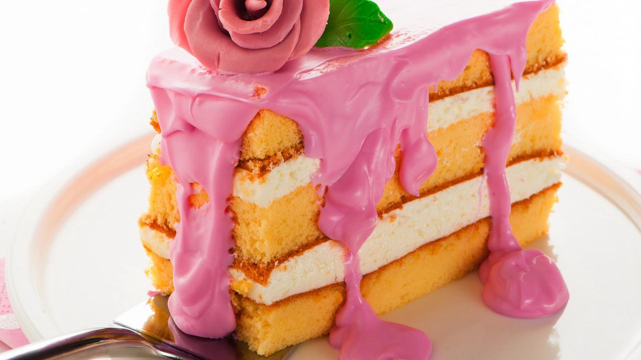 Wallpaper A piece of cake with pink cream and sugar rose