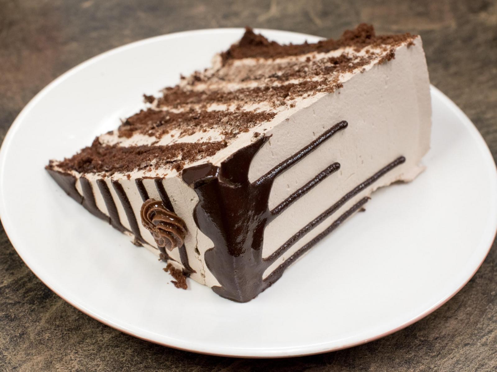 Wallpaper A piece of cream cake on a white plate