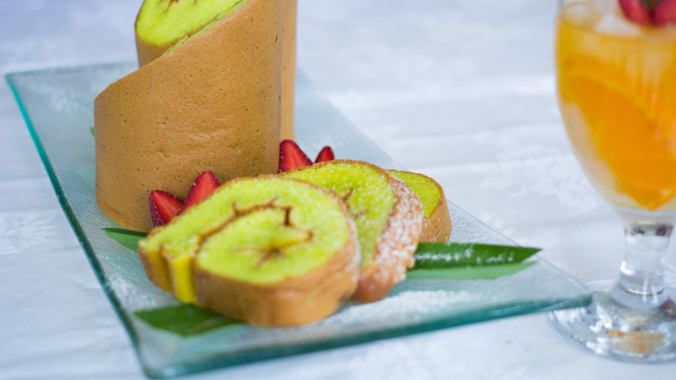 Wallpaper Roll with powdered sugar and strawberries on the table