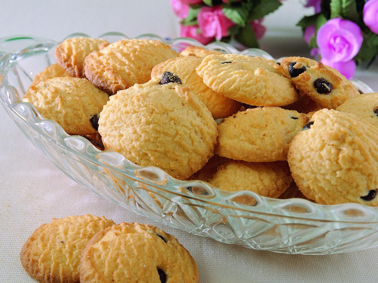 Wallpaper Shortbread cookies with raisins on a crystal vase