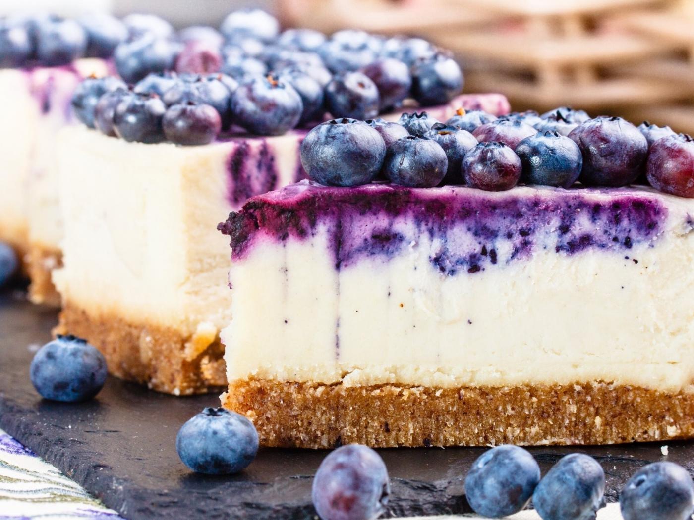 Wallpaper Delicious blueberry berry cheesecake close up