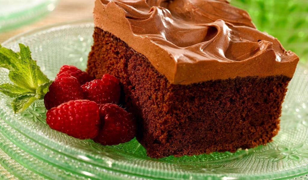 Wallpaper Sponge cake with cream and fresh raspberries on a plate