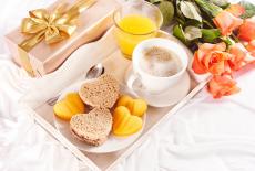 Wallpaper Breakfast with gifts, hearts and a rose for the beloved