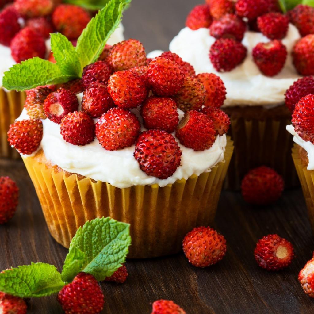 Wallpaper Cupcakes with cream and strawberries