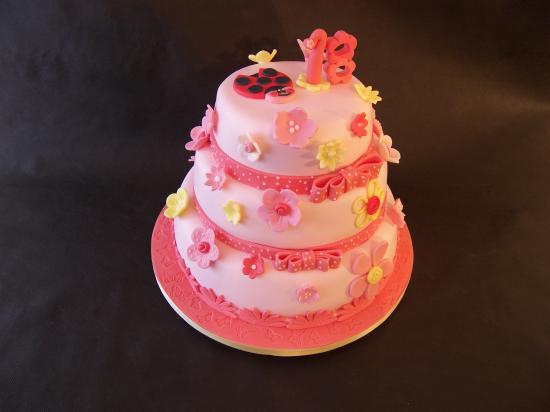 Wallpaper Beautiful pink birthday cake with bouquet of flowers