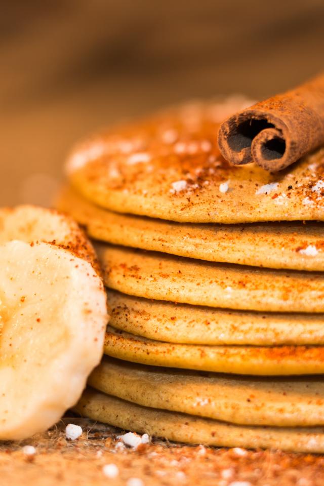 Wallpaper Pancake with cinnamon and bananas closeup