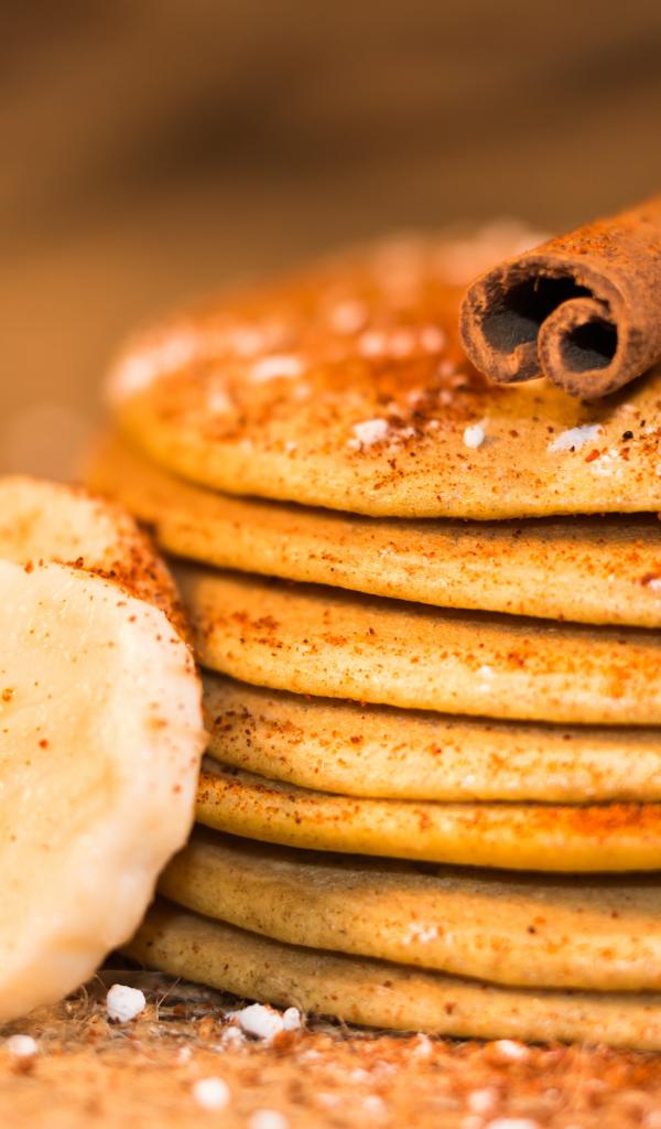 Wallpaper Pancake with cinnamon and bananas closeup
