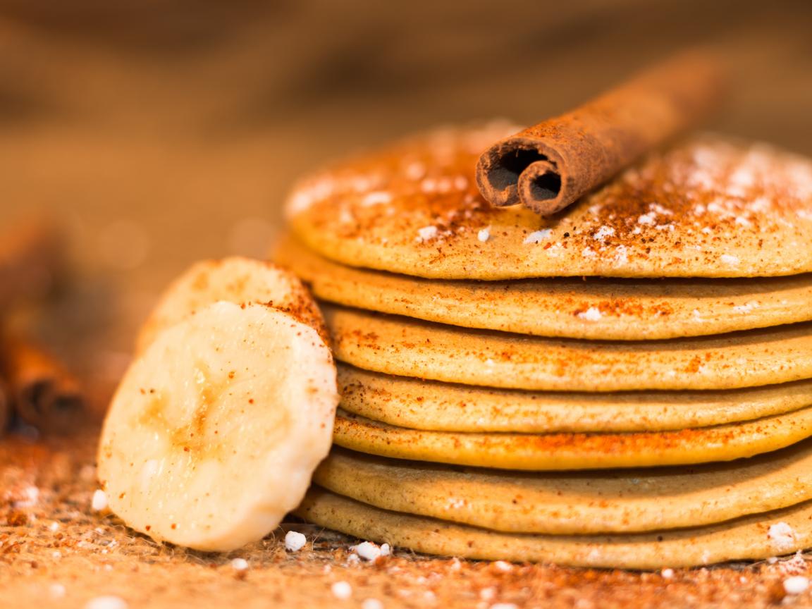 Wallpaper Pancake with cinnamon and bananas closeup