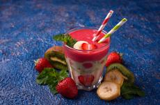 Wallpaper Cookies with jam, slices of banana, kiwi and orange on a white background