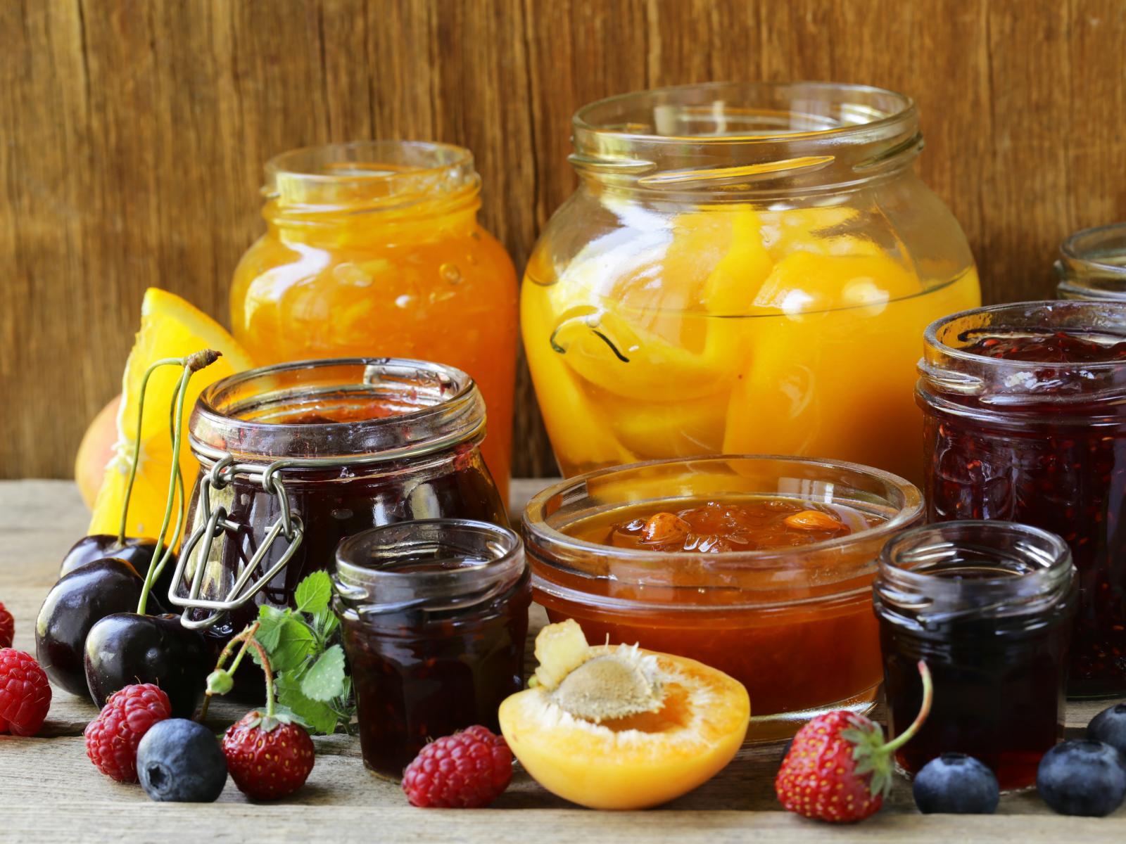 Wallpaper Jam and jam on the table with berries