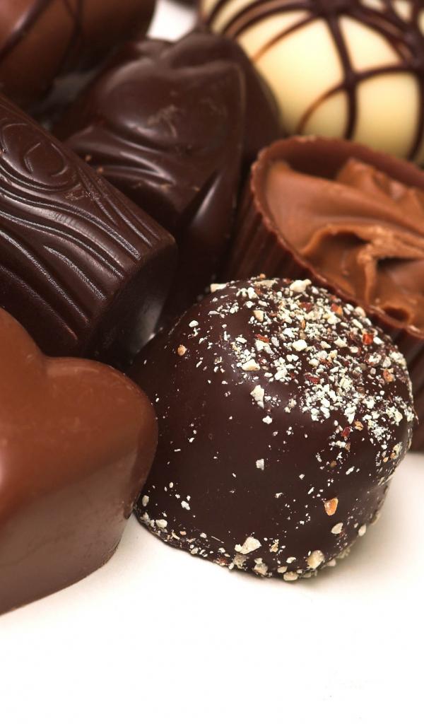 Wallpaper Different chocolates on white background