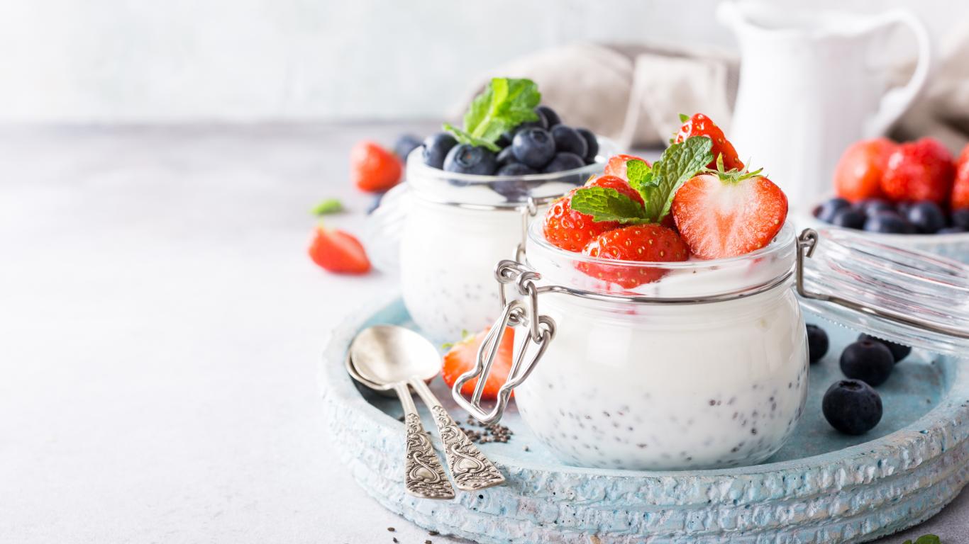 Wallpaper Yogurt with goji seeds and berries for breakfast