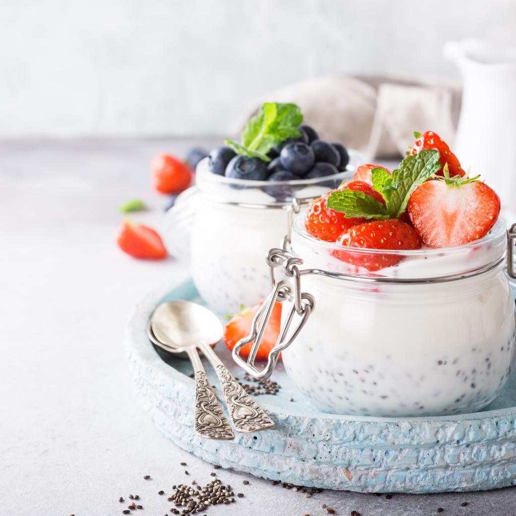 Wallpaper Yogurt with goji seeds and berries for breakfast