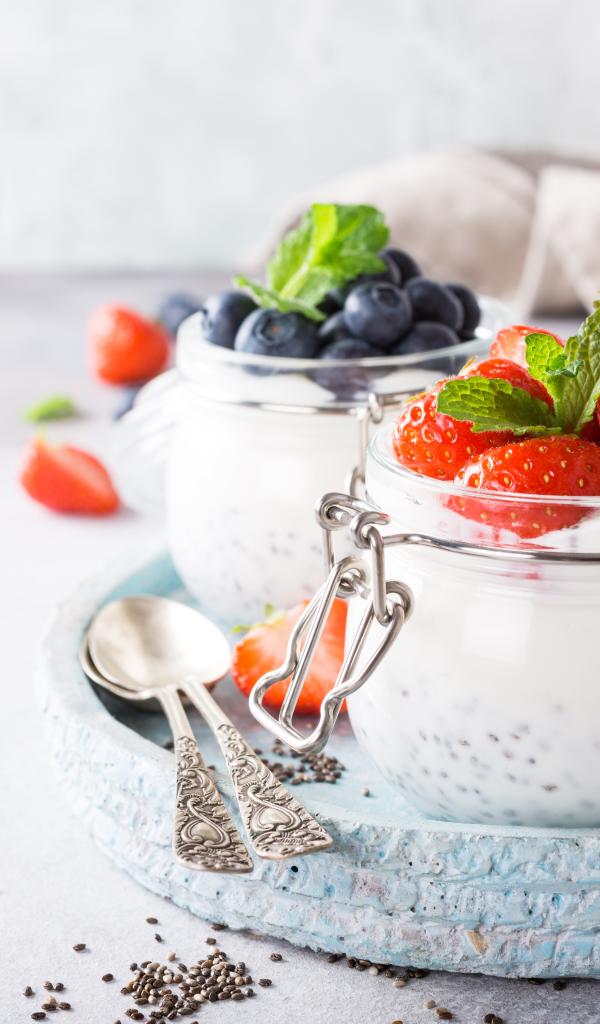 Wallpaper Yogurt with goji seeds and berries for breakfast