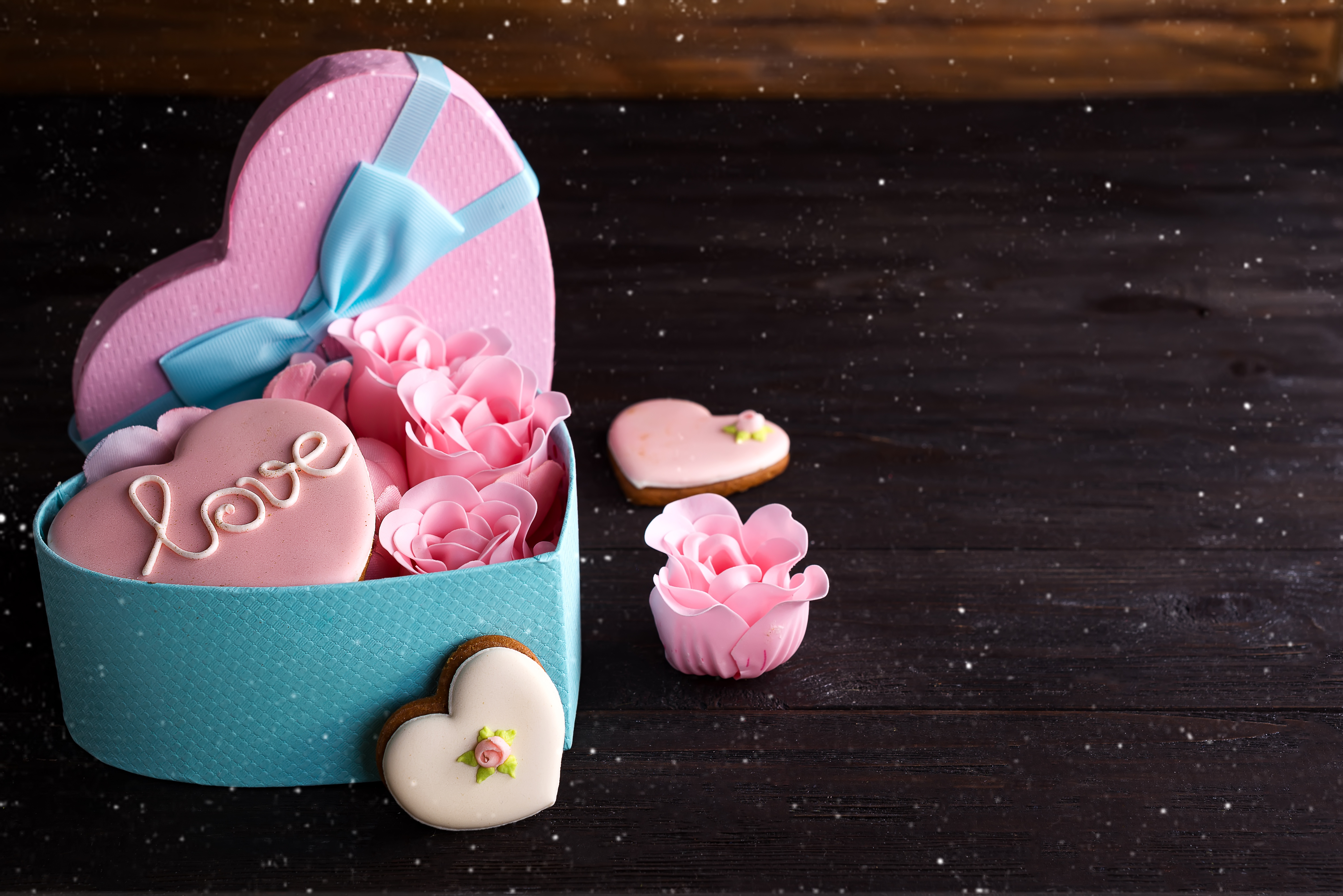 Wallpaper Heart-shaped box with mastic roses and cookies