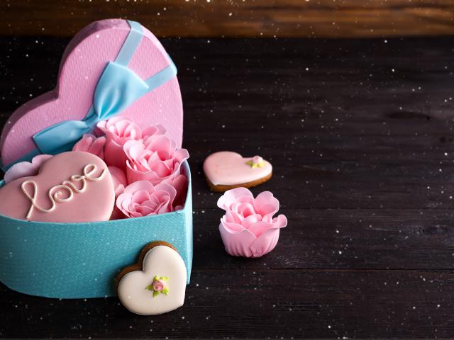 Wallpaper Heart-shaped box with mastic roses and cookies