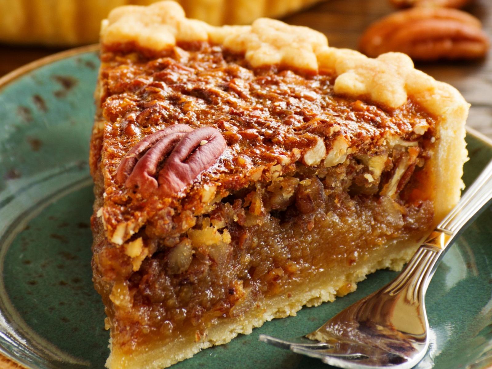 Wallpaper A piece of cake with nuts on a plate with a fork