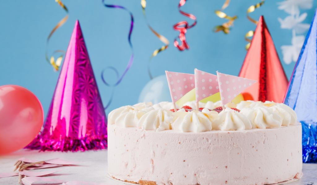 Wallpaper Pink birthday cake on the table with decorations