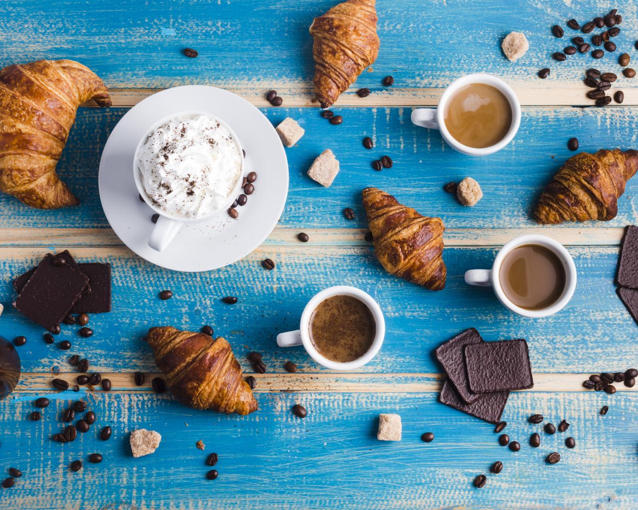 Wallpaper Sweets with coffee on the blue table