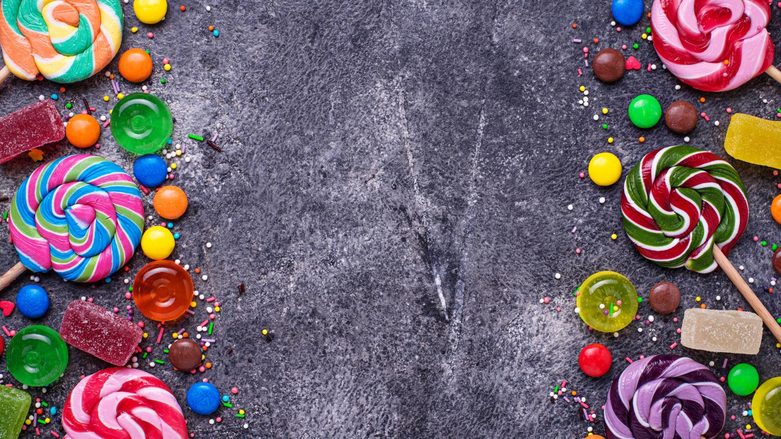 Wallpaper Multicolored candies on gray background